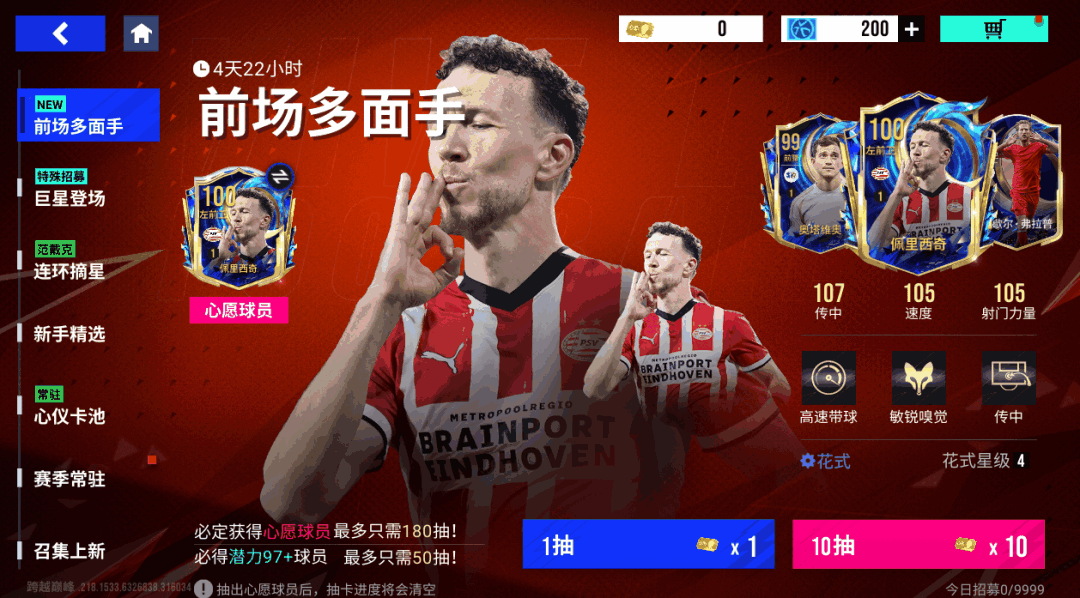 【前场多面手】卡池将于7月28日11时至8月4日11时开启!每次招募都有概率获得100潜力巅峰佩里西奇、99潜力巅峰奥塔维奥、99潜力精选弗拉普等球员!