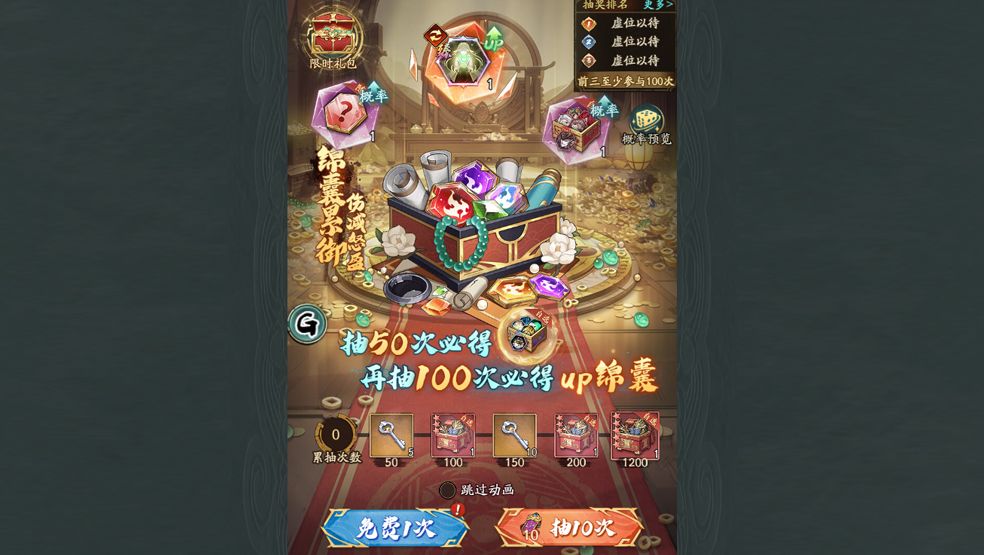 △无双锦囊保底:每轮UP锦囊抽奖中,抽取达到指定次数后,必定获得无双锦囊自选宝箱。