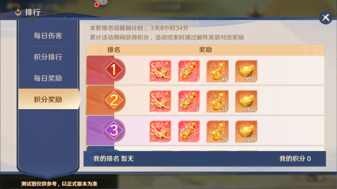 活动结束后,会按照守护使大人7日获得的总积分进行排名,并通过邮件发放对应的排名奖励。