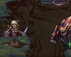 Skill2泥浆爆:扣除500生命值,对周围敌人造成250%魔法伤害并爆出一片泥浆,接触到泥浆的敌人受到20%的减速效果。若自身生命值低于30%使用此技能会直接自爆,造成300%魔法伤害并变身为泥核