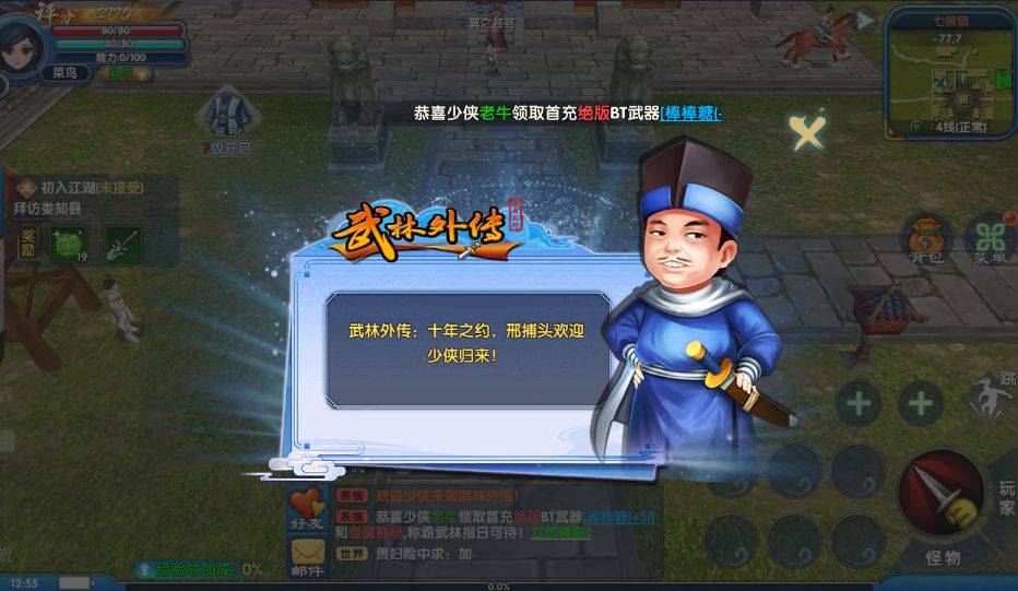 二、旧账本里添新页,小人物的江湖再掀浪游戏经典剧情做成可交互的 “时光回廊”。玩家可以跟着小贝偷糖葫芦重现 “五岳盟主” 的闹剧,也能帮郭芙蓉写 “检讨” 体会大小姐的成长。但更让人期待的是新增的 “十年后的江湖志”:七侠镇来了位自称 “盗神传人” 的神秘客,把邢捕头气得摔了捕快腰牌;佟掌柜的客栈开了分店,却因 “会员制” 引发江湖热议;白展堂的儿子偷偷练起了 “葵花点穴手”,被老爹追得满街跑。这些新故事延续着 “小人物书写大时代” 的内核。在 “龙门镖局劫镖案” 副本里,玩家会遇到卖花姑娘阿莲 —— 这个在端游里只露过一面的角色,如今成了破解谜案的关键。她记得每个过路人的模样,只因 “做生意得用心”,这种市井智慧恰恰是《武林外传十年之约》最动人的底色。而新增的 “江湖议事厅” 玩法,让玩家能投票决定小镇政策,比如 “该不该给乞丐设粥棚”“要不要禁放烟花”,每次投票结果都会改变游戏世界的细节,就像当年那群客栈伙计,用琐碎日常撬动着江湖的脉搏。多维转职系统藏着对江湖身份的哲学思考。从 “散人” 起步时,玩家像极了初入江湖的小贝,拿着木剑都能摔跟头。但随着历练加深,可选择的道路愈发多元:想做 “游侠”,能习得白展堂的轻功,在屋顶瓦片上踏出一串残影;愿当 “郎中”,则能学祝无双的医术,给 NPC 包扎时会听到 “谢谢你呀,比大嘴的厨艺靠谱多了” 的调侃;若选 “讼师”,就得像吕秀才那样靠口才化解纷争,在公堂上引经据典,把劫匪说得痛哭流涕。