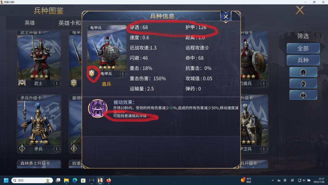 很明显,对于盾兵兵种,我们要让他做前排扛伤,战士兵种要让他做输出,枪兵兵种最好不要用,属性差太多。