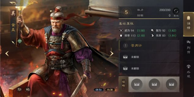 韬略细节:黄盖《坚决》《机动》《励心》,孙权《东观汉记》《机动》《励心》,周瑜《火计》《时利》《料敌》
