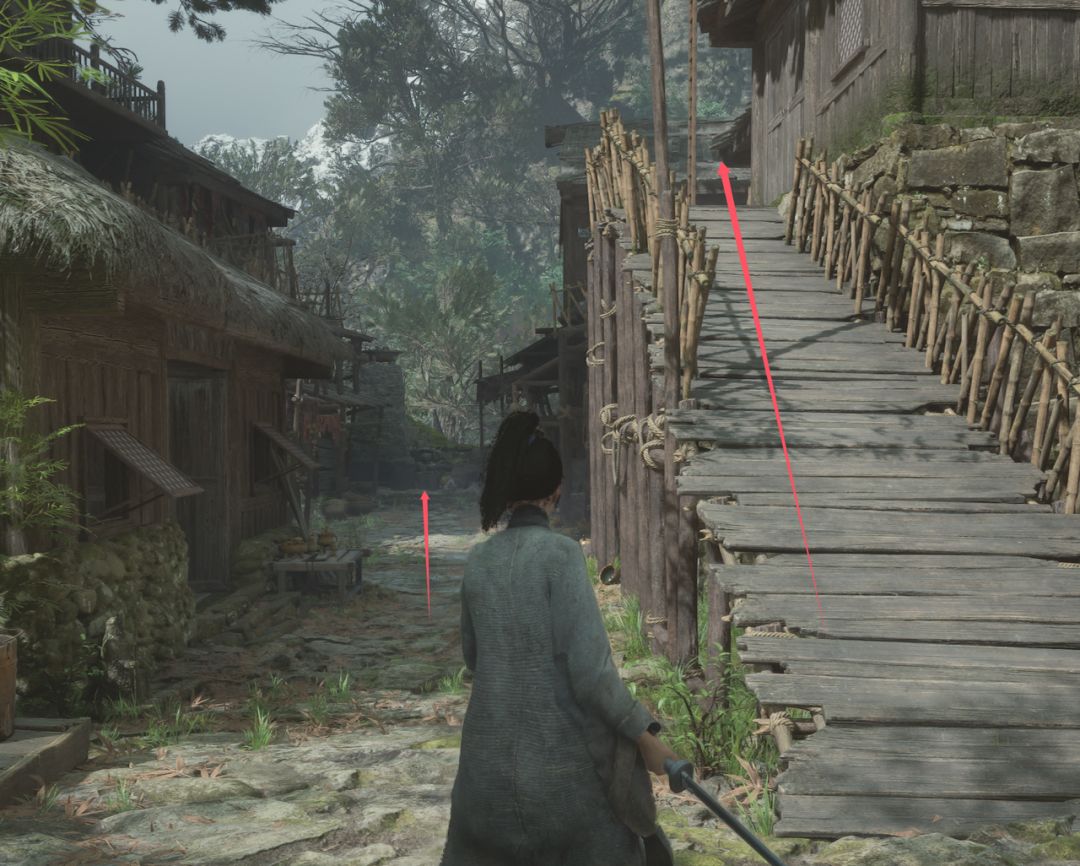 羽渡到蜀王祠神龛后上二楼走断木捷径后向右转走右侧箭头。