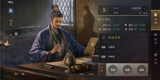 最后我们来看程昱的自带战法勇冠贲育:主动战法,发动概率60%,使敌军单体产生逃兵(受智力影响)之后对其造成,若目标为前排则伤害系数提高80%。
