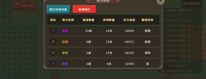 第三天大概凌晨,楚军大将似乎如有神助,十分勇猛,随后打开优势,拿下不少城池,直接第一。