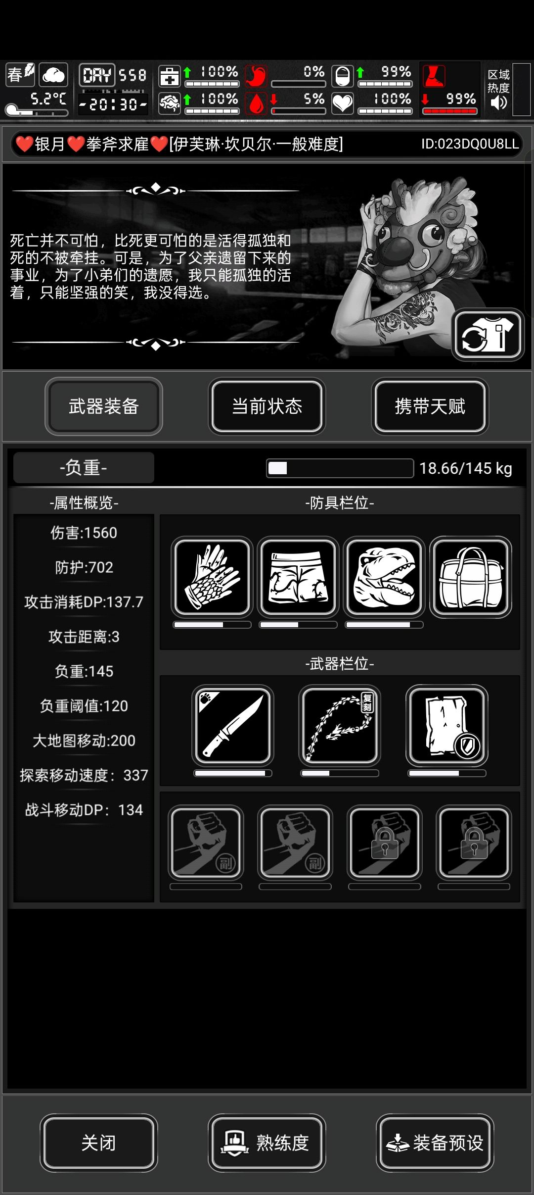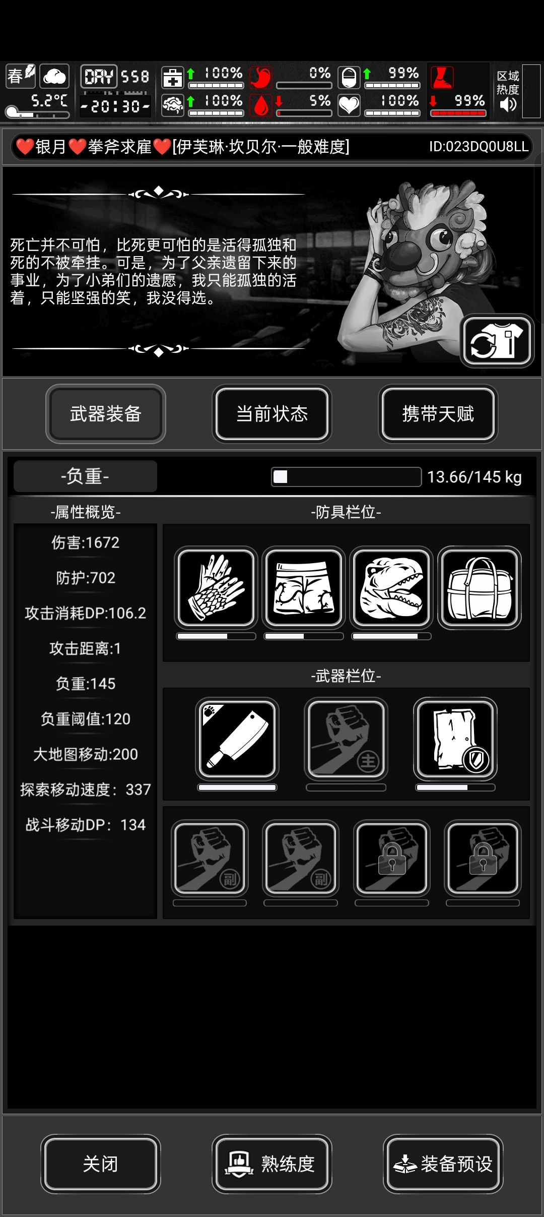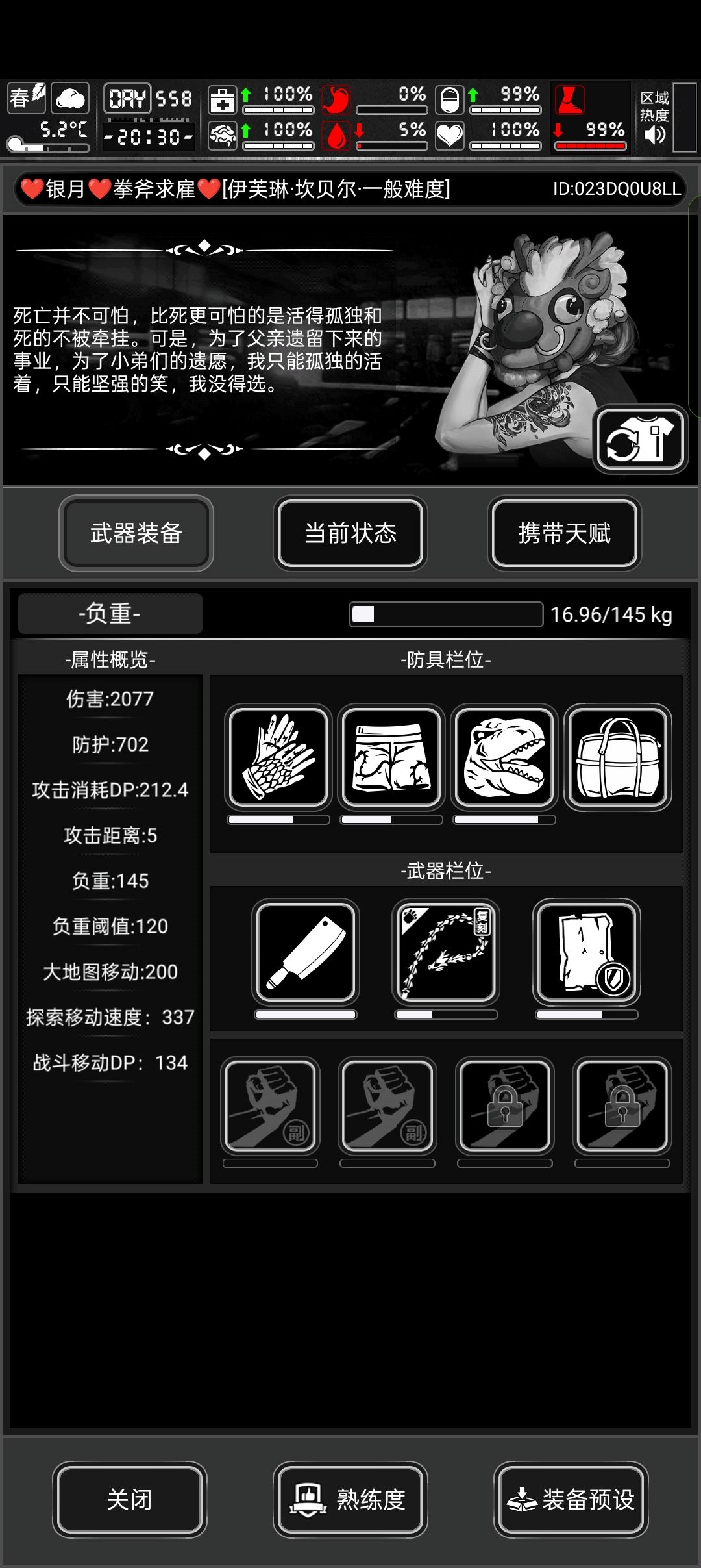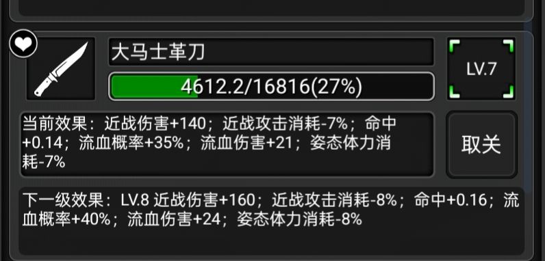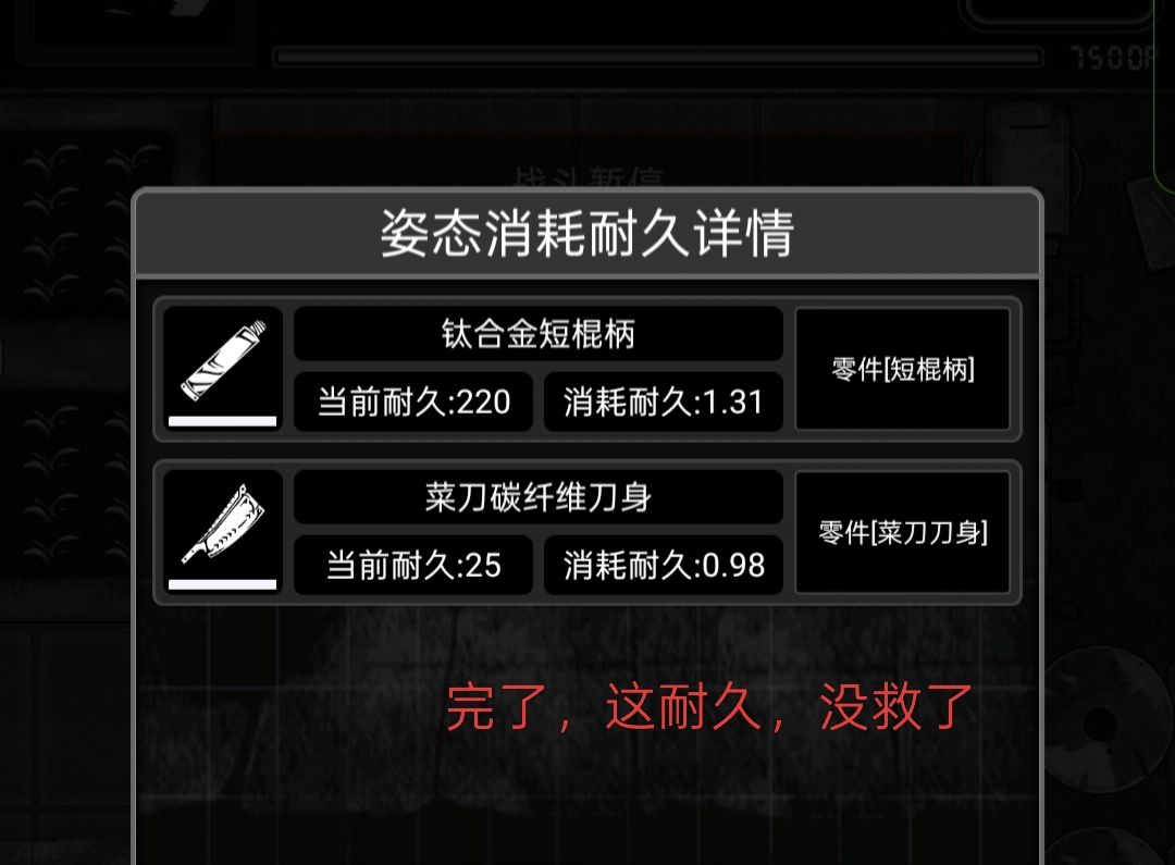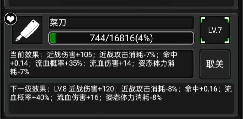 技能点全点在伤害上了,虽然刀类武器看中的就是伤害,但是一格的攻击距离和几乎没有的耐久度,着实让人难以上手。
