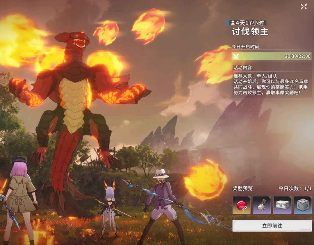 讨伐领主:讨伐首领,在地图上可以最多和20名玩家共同作战击败随机刷新的boss难度较高对战力要求比较大萌新建议先以提升战力为主。