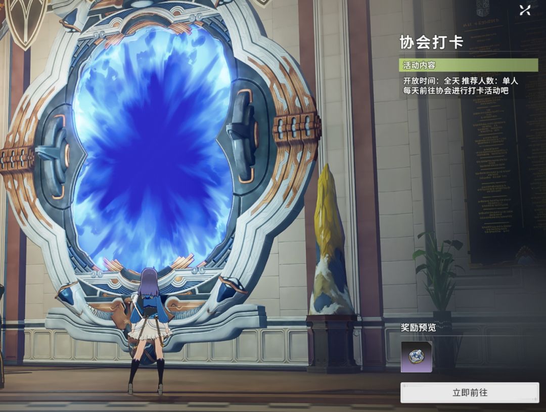 协会打卡:简单的打卡活动这里不多赘述只需要按照任务所要求每天前往协会进行打卡即可获取贡献币。