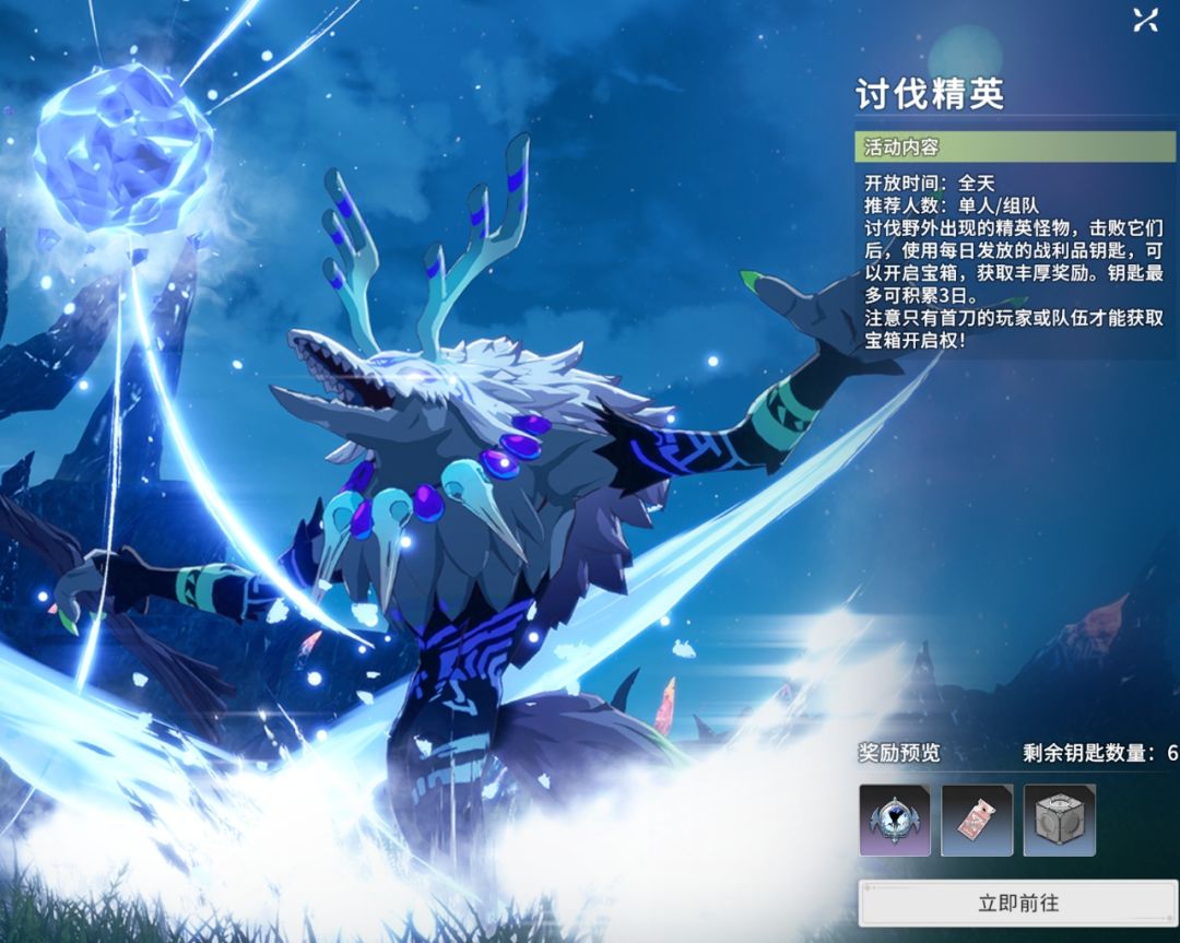 tips:钥匙最多可以累积3日,但要注意的是只有最先击败的玩家或者队伍才可以开启宝箱。
