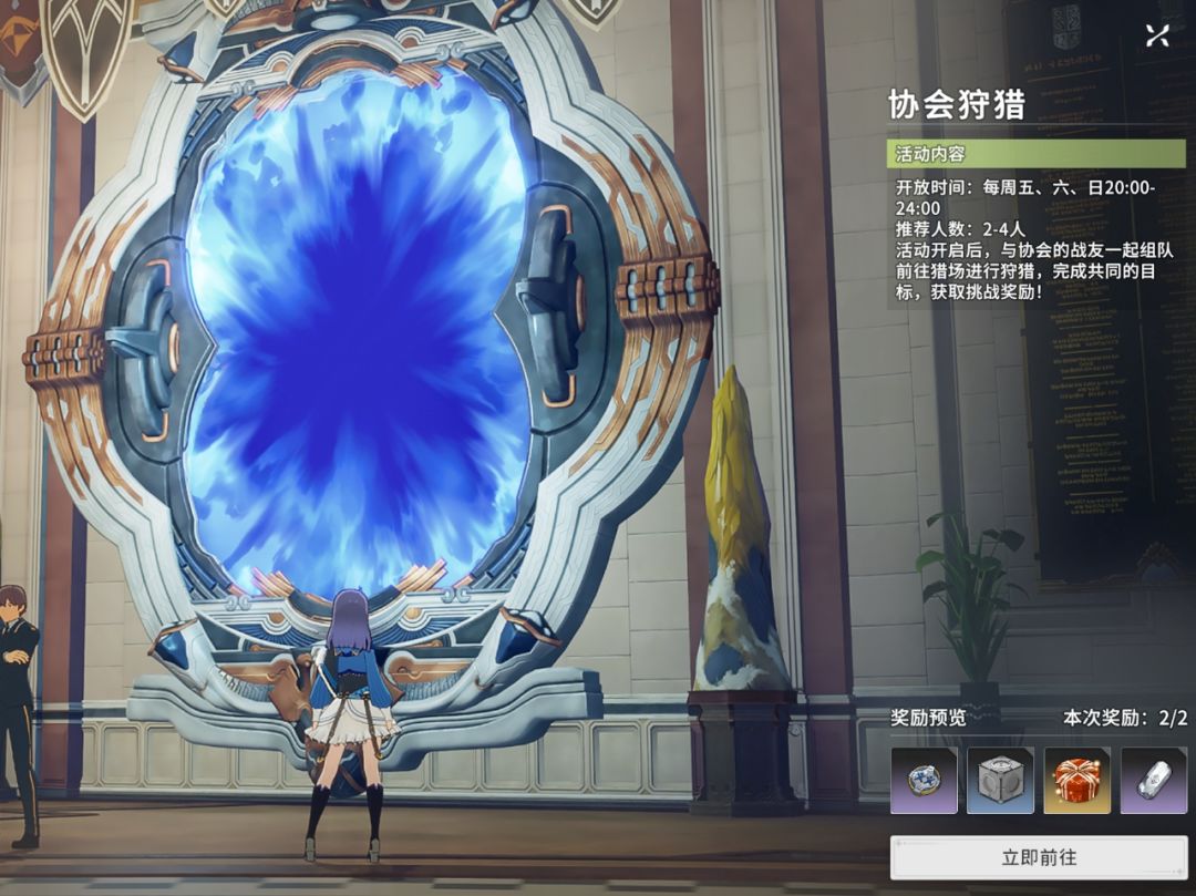 协会狩猎:只开放在每周五,周六,周日的固定时间,以小队之间的组队参与为主,前往猎场进行狩猎。完成目标,赢取挑战奖励。