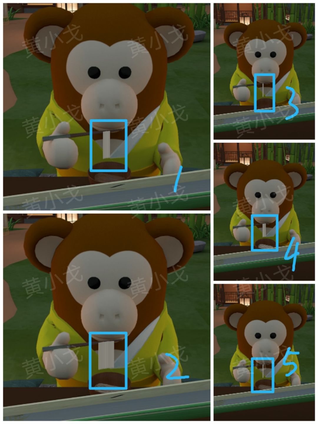 30.点击雕像旁边的石头上的密码锁,根据[亭子]场景猴子吃面顺序,调整密码锁