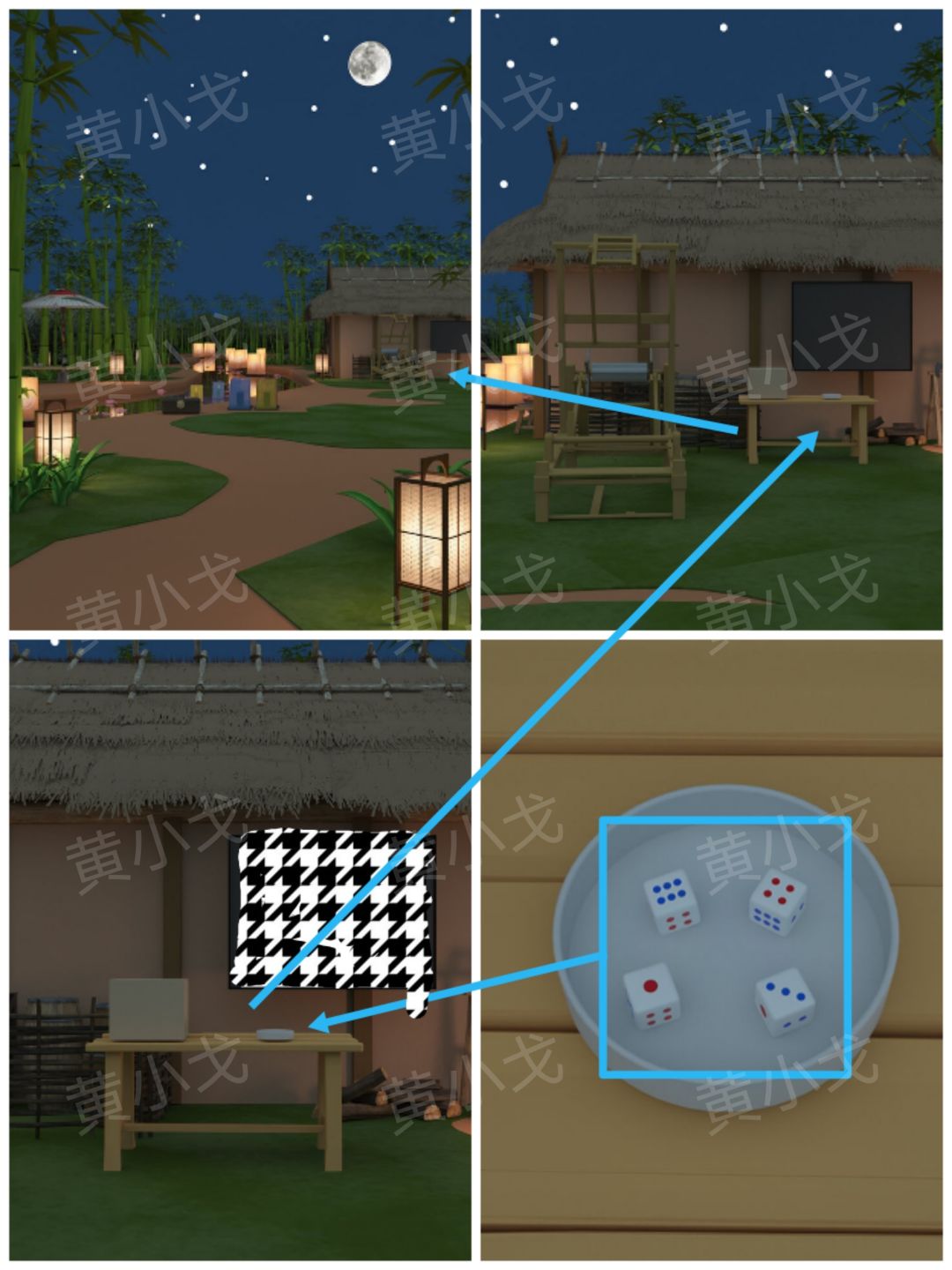 21.点击查看茅草屋外边的桌子上的盘子里的骰子,获得线索