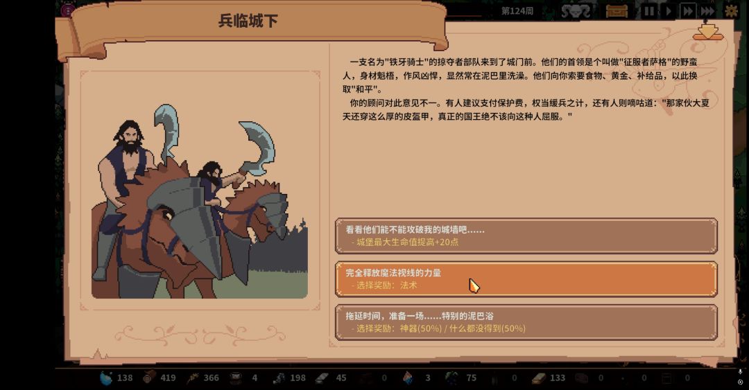 游戏中随时触发各种事件给你带来各种助力(当然最爱赌狗选项,要么神器,要么一无所有)。
