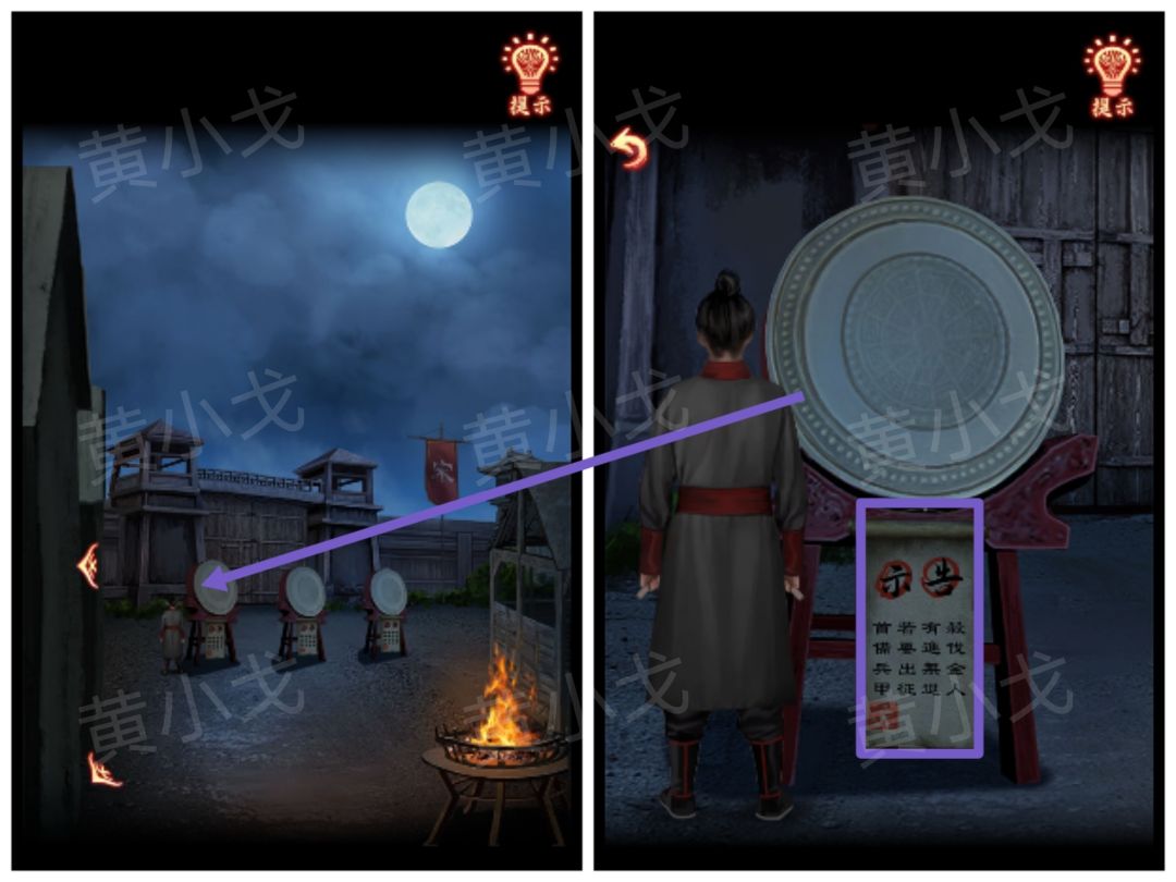 20.点击第一面鼓,拿【一把长戟】和【士兵铠甲】给士兵,士兵击鼓