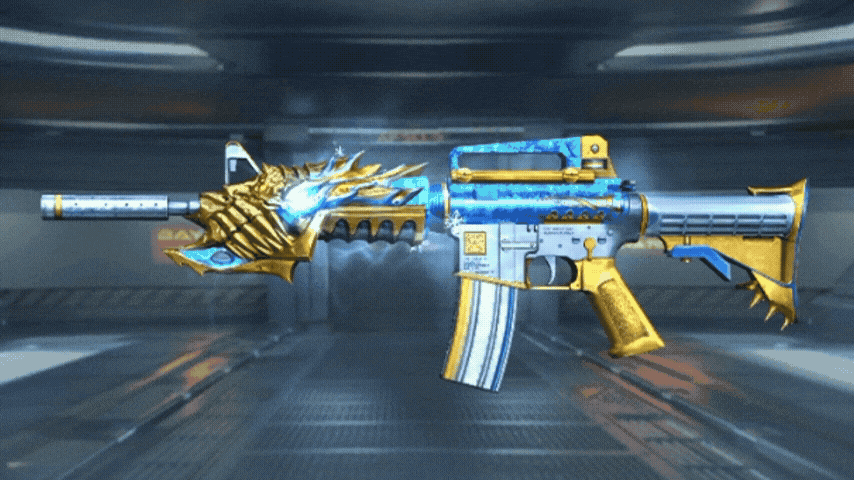 王者之武继承了M4A1-黑龙的猛兽感,在原来凌冽的杀意上覆盖了高贵的黄金外壳,更显奢华豪放,尤其是枪头重叠的龙鳞,宛如滑动的游龙,扣人心弦,配上兽眼那一抹红光,说是王者系列的“真龙”也不过分。