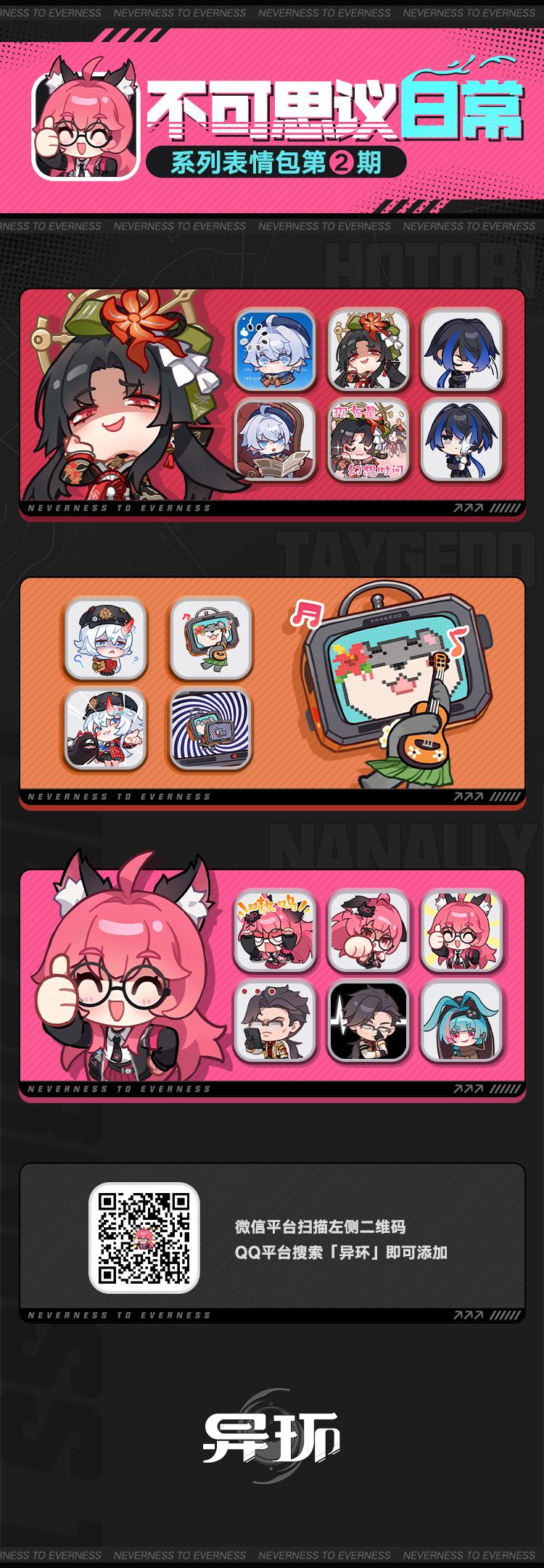 「不可思议日常」表情包第二弹现已登陆QQ与微信商城!前往表情商店搜索“异环”添加后即可使用!