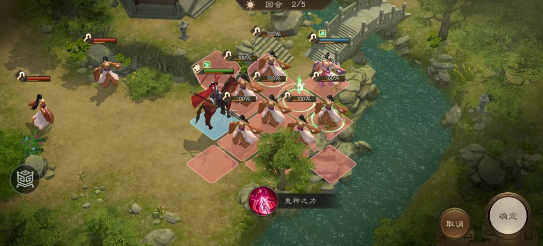 第二回合,吕布走到上方六个舞女处,对其中间的舞女为主目标释放大招“鬼神之力”,路就完全清空了。