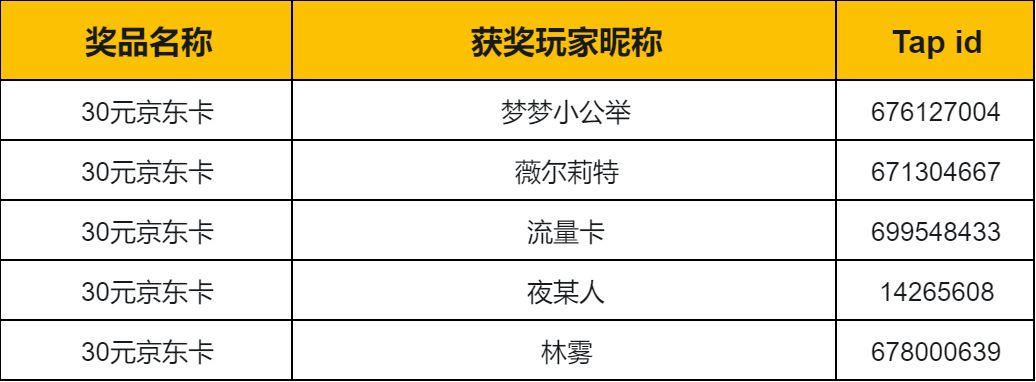 1. 获得【京东卡】奖励的玩家请提供【个人Tap id界面截图】;