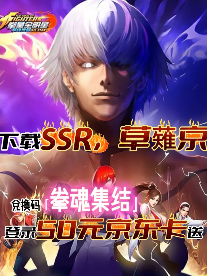 ✅ 登录送 50 连抽(保底出 SSR,草薙京 / 橘右京必中其一)