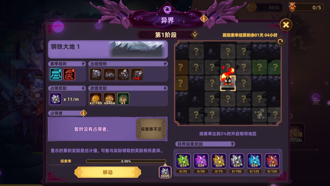 ▶每周一对于所有地区超出100%的【探索率】,每0.4%会被结算为1个该地区的【占领奖励】,发送至玩家邮箱。