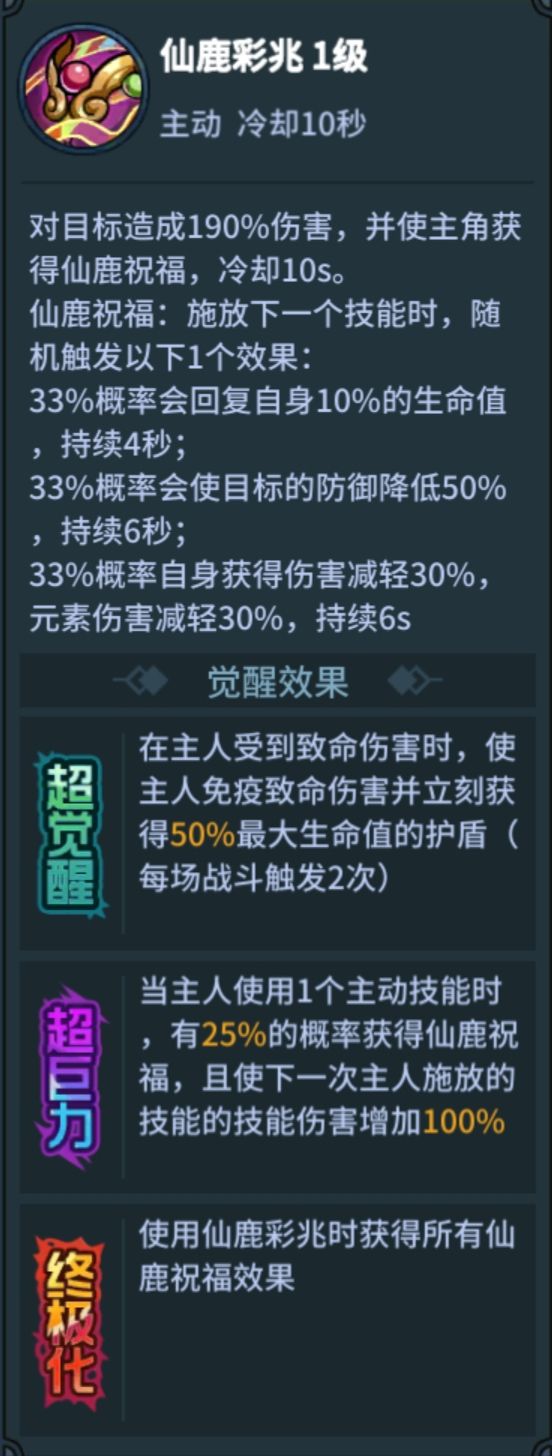 在经历了加强后,33仙彩鹿攻坚克难时的作用大大提高,通常搭配33喵娘,33赤骸龙进行攻坚克难