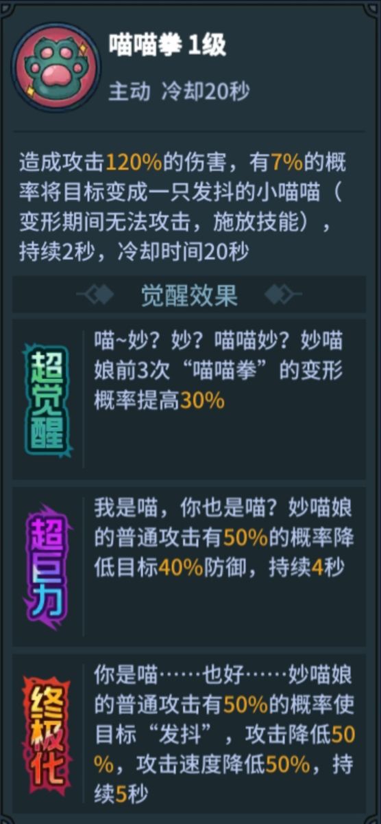 33喵娘在攻坚克难中带来的提升丝毫不亚于赤骸龙,极致的数值,攻击、攻速降低不是喵娘的极限而是数值的极限,最高只有50%