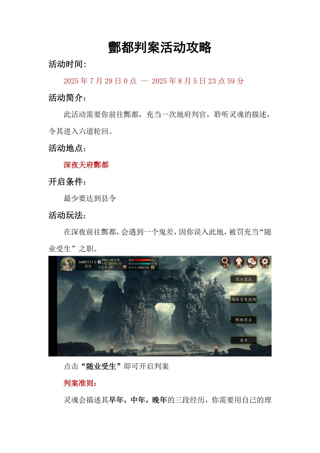 酆都判案活动攻略