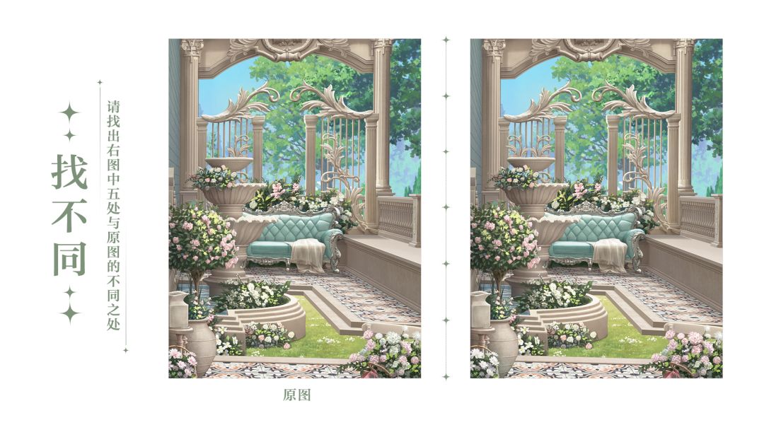 本期找不同活动共有五处不同。请设计师们在右图中圈出与原图的不同之处,并带图发送答案。