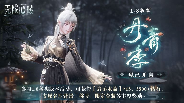 1.8版本「丹青季」现已正式开启!参与1.8各类版本活动,可获得【启示水晶】*15、3500+钻石、专属名片背景、称号、限定套装等丰厚奖励🎉