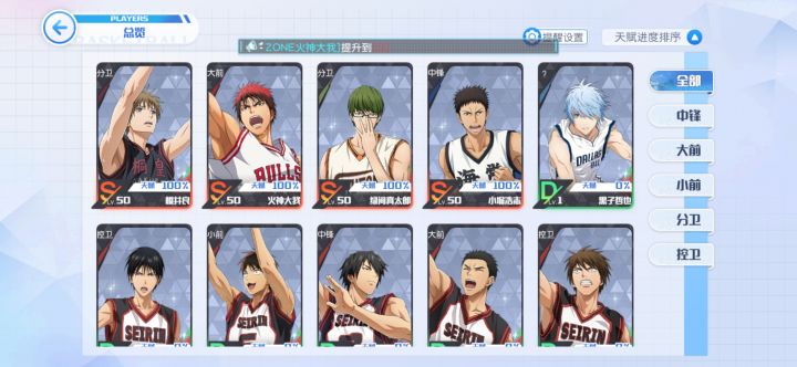 满天赋绿箭、樱井良、火神、浩志,绿箭3觉醒,樱井良4觉醒,火神和浩志一觉醒,有月卡和终身卡,紫色篮球,樱井良省排名44,这周打完能进全省全十,一直玩战力持续更新中