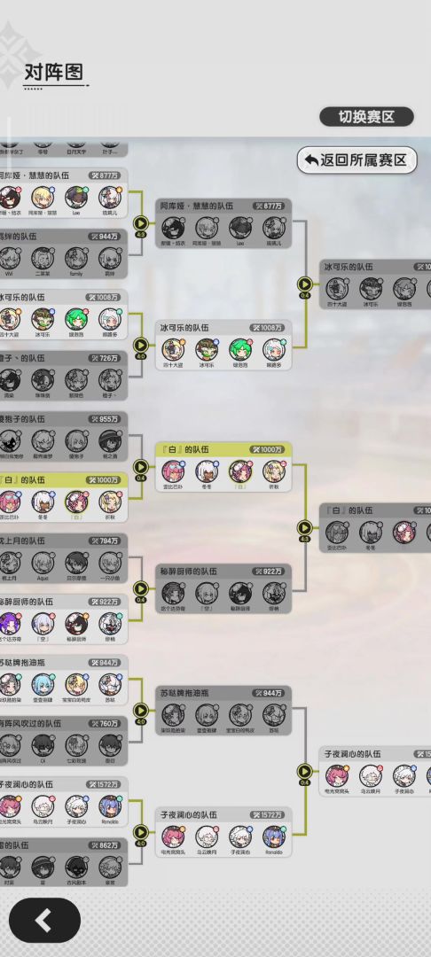 可以看到,我们这次组队赛只有一个大腿,而且整个队伍是2术2斗,没有骑士,可以说阵容非常差了。