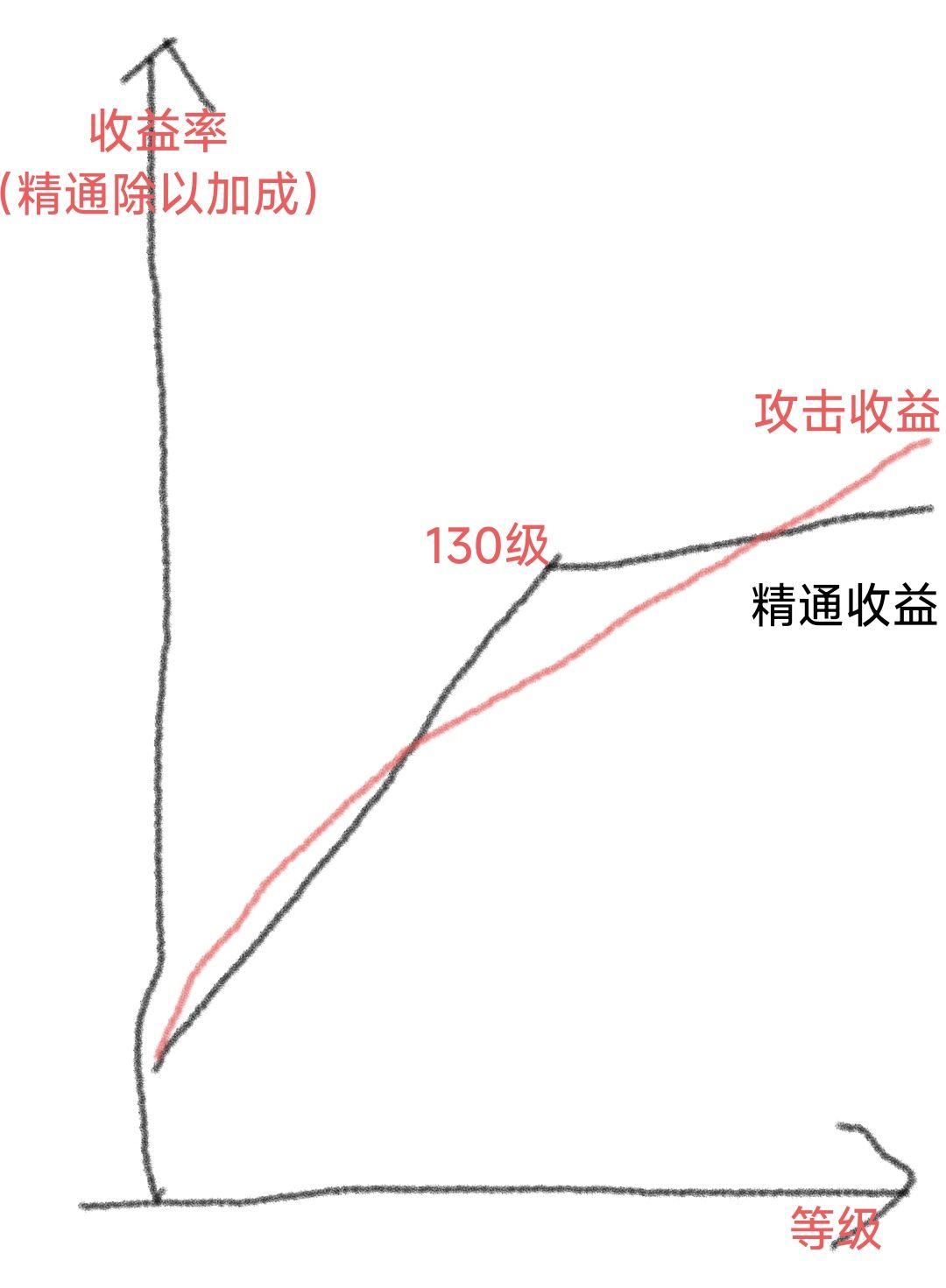 随着等级的越来越高,攻击力也越来越高,提升攻击力带来的收益就越来越低。