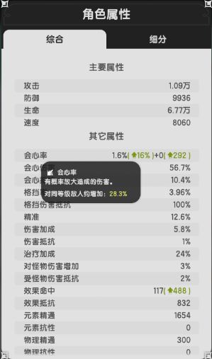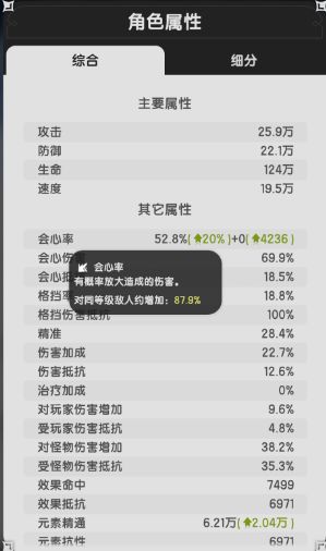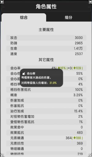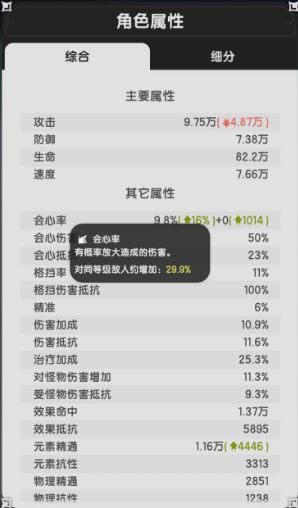 游戏内有很多种属性,后面会以“会心”、“精通”为例子讲解属性的收益,让你了解什么时候该堆会心,什么时候该堆精通。