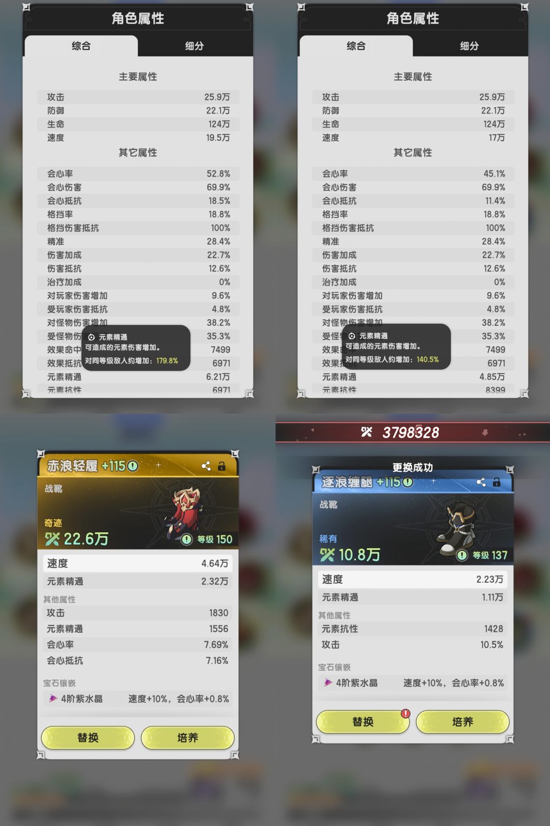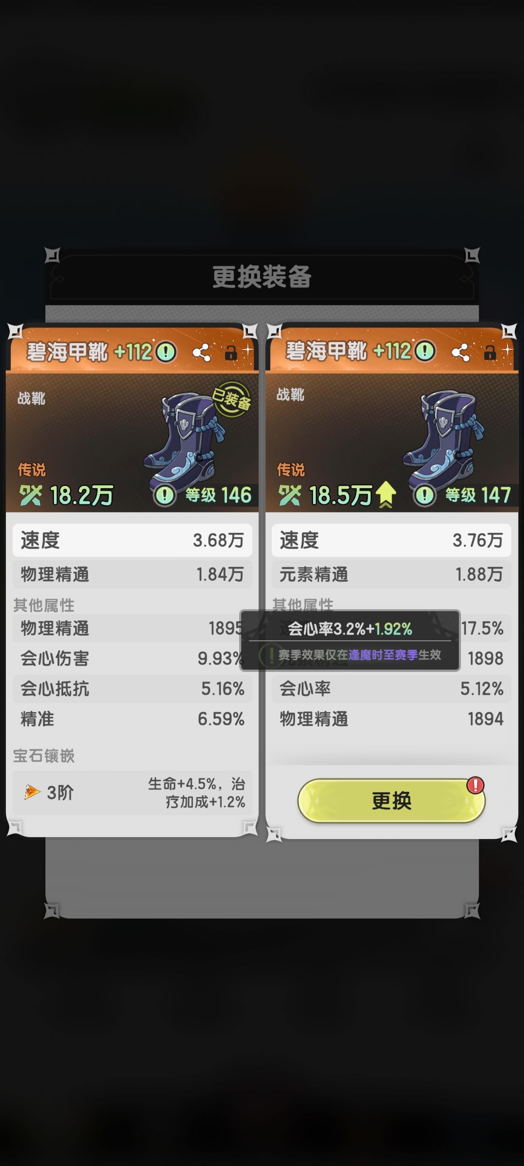 如果实在搞不清楚哪件装备收益高,可以去爬塔试一下,换一件装备对照一下伤害就知道了。