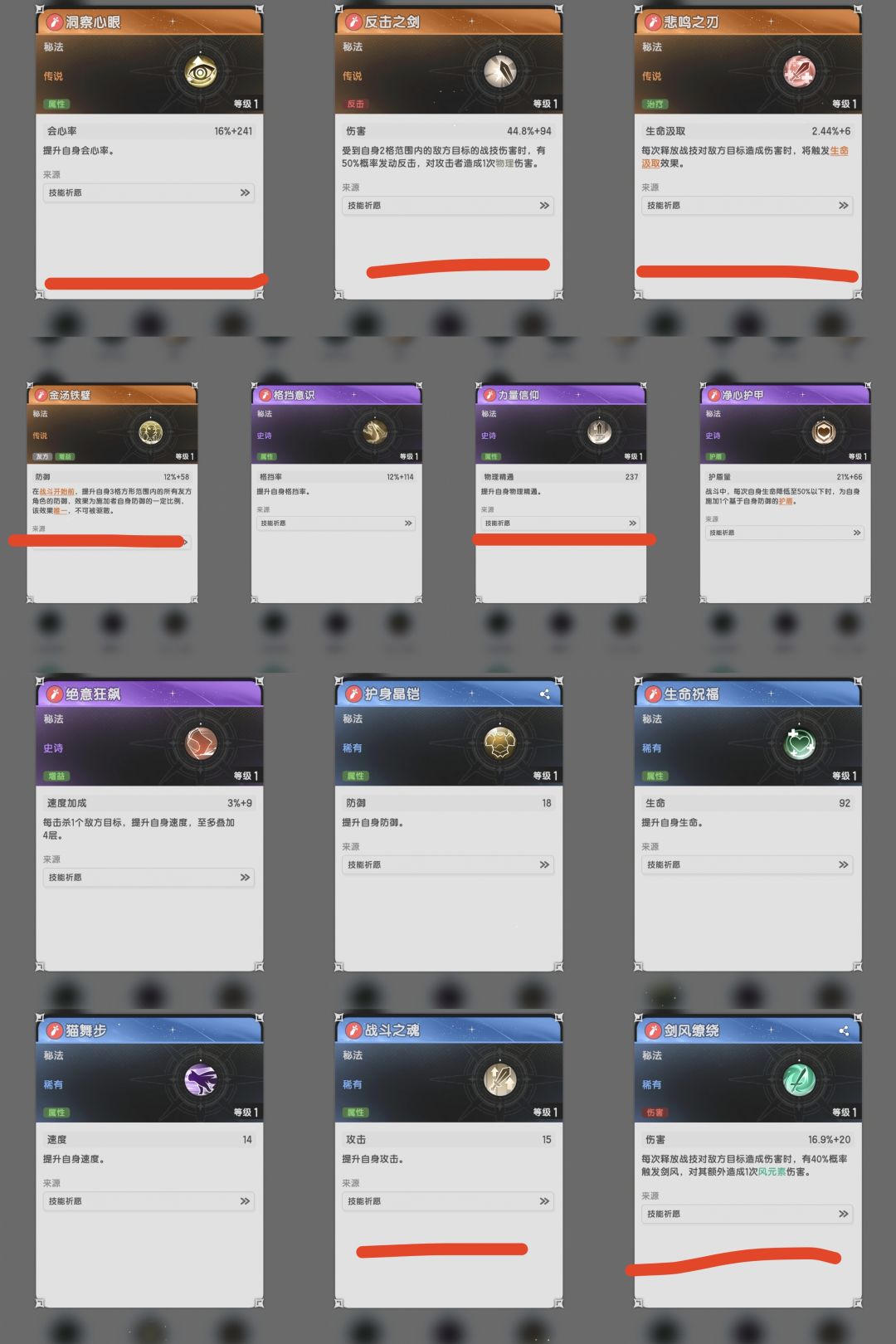 2.装备属性会心和格挡非常重要!因为升级后技能给的会心和格挡会降低