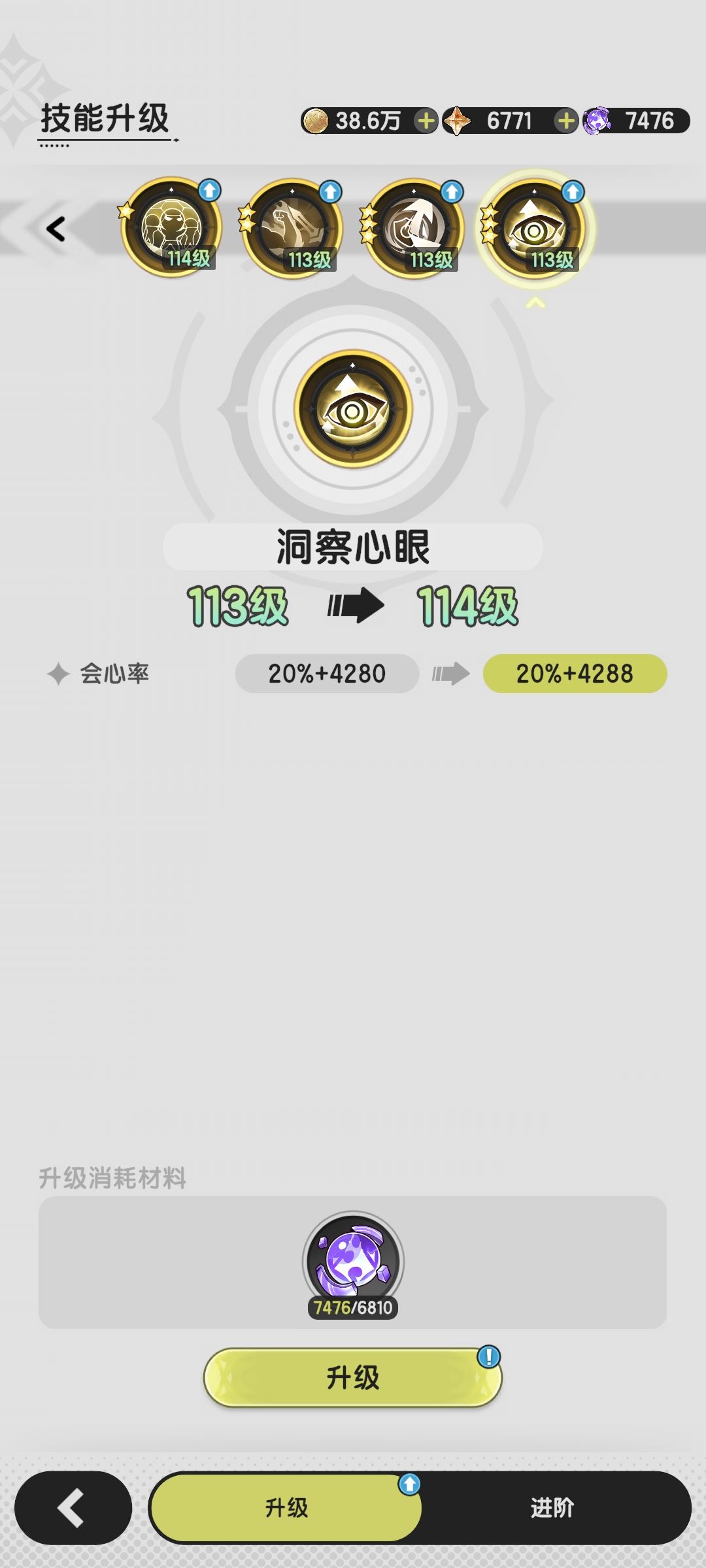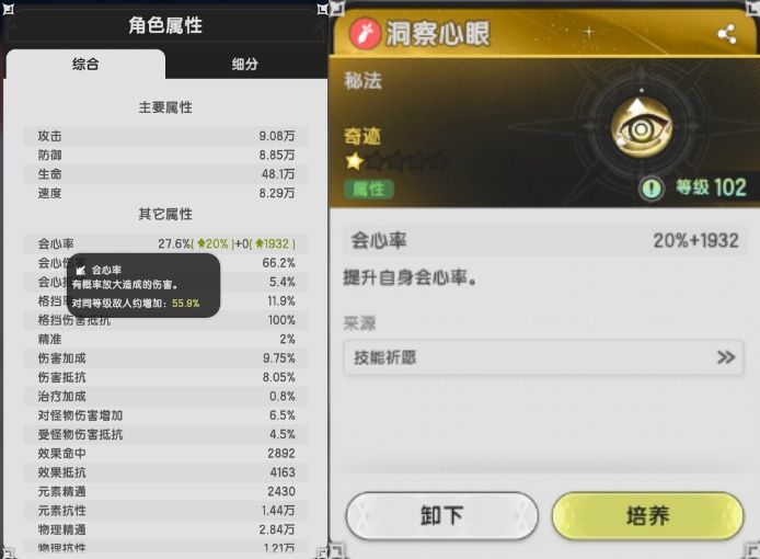 所以:魔力涌动、洞察心眼会随着角色等级提升而降低暴击。