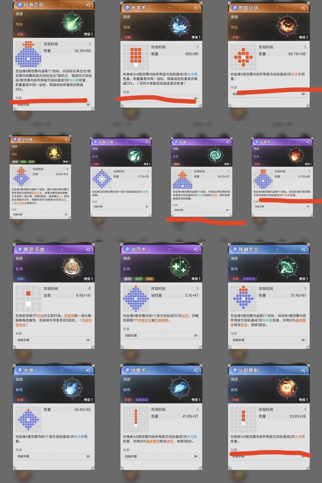 主动:龙卷(火球术),水龙,烈焰火环(火焰喷射),风神之羽