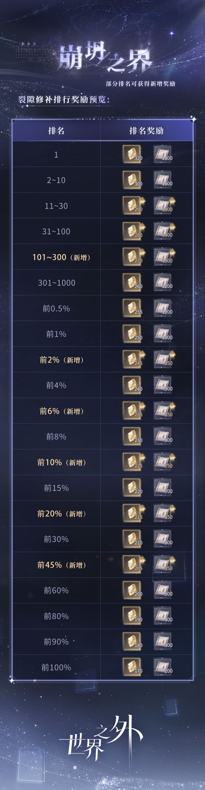✦阶段奖励档位进一步细分,部分排名可获得新增奖励,具体请参考下方长图内容。
