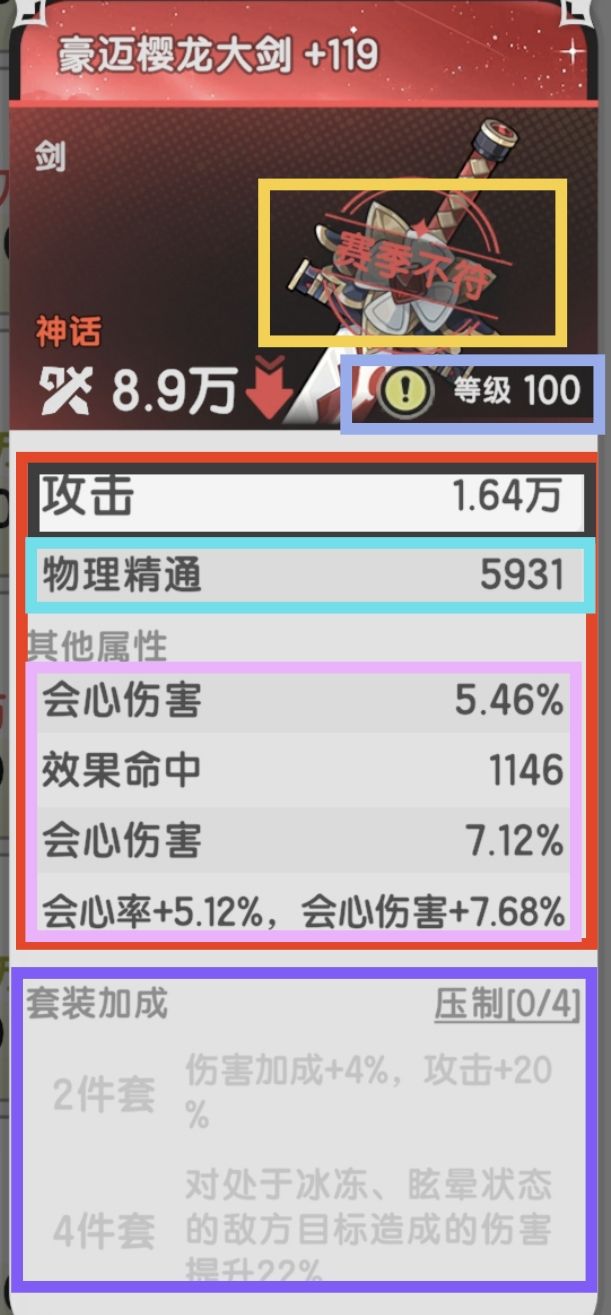 记录所有套装效果套装效果仅出现在神话以上装备上,且数值固定,不享受其他任何加成。套装效果仅在该套装指定的赛季生效!!………………………………………………………………源水大社中规中矩,减伤算法...