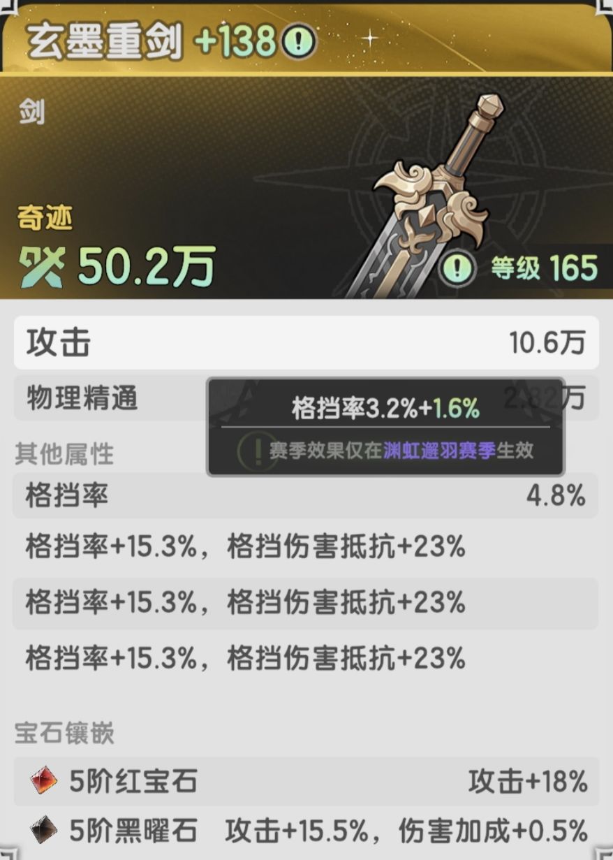 副武器:会出其他部位的全部属性,以及会心/精准/格挡。