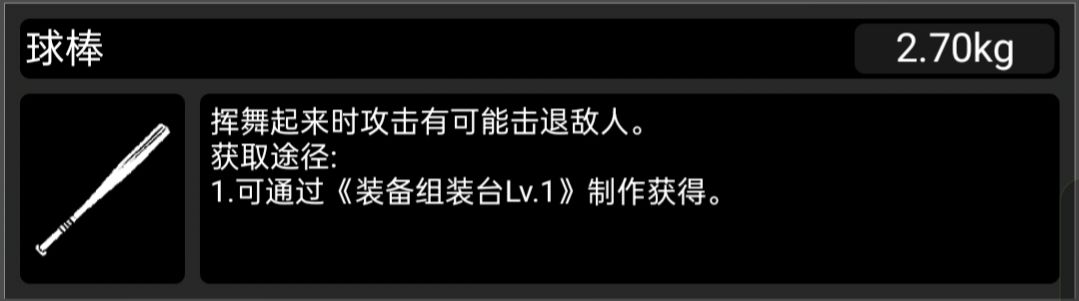 (补充说明:棒球棍作为末日电影题材的常客,被这样埋没属实可惜,而它的老大哥(狼牙棒)的伤害数值可是异常的爆炸,如果官方后续不考虑加强它的话,那这把武器连作为玩具的资格都没有了。)