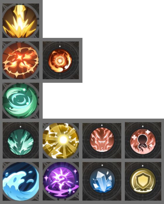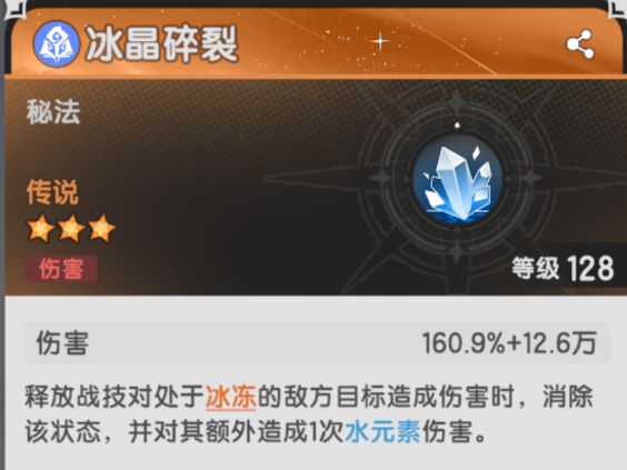评价:水法本身倍率低,况且在有异常状态免疫提升buff(异常状态解除后一回合内不会进入异常状态)的情况下,冰冻最少也要隔一回合,导致表现并不如光火,所以使用率偏低。
