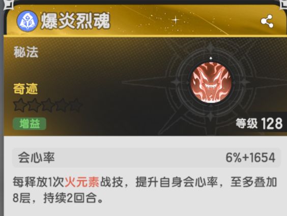 评价:4转火法核心之一,如果装备提供会心率不够可以带一个补会心,大多数情况并没有魔力涌动更有优势(前期品质低)。