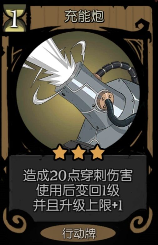言归正传,机械师的设计思路也是如此,个人认为最基础的流派就是升级流,它可以跟几乎所有其他流派产生互动,当然如果你是个纯粹的人,也可以直接携带几张充能炮,“大炮开兮轰他娘,威加海内兮回家乡”也不错(笑)。