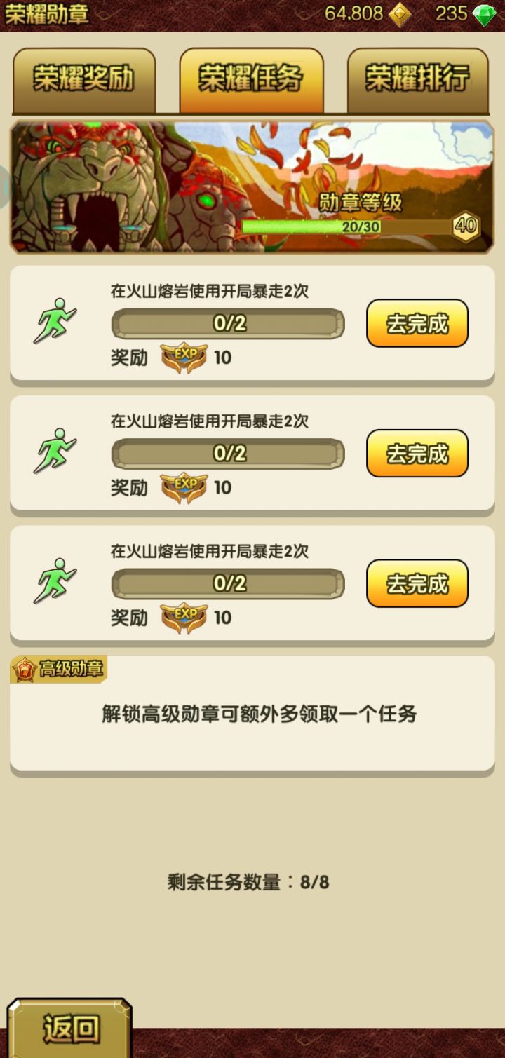 想请问各位大佬这个任务怎么过,角色暴走加成和神像暴走技能还有宠物开局暴走技能都不能叠加。在开局有暴走的情况下也不能看广告 ,原来还能刷别的任务 现在这三个都刷不了了