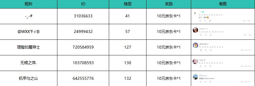 恭喜以上5位少侠获得京东卡奖励!
