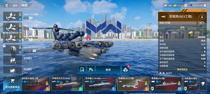 首先,买个地效飞行器,配置如图!就船本身需要5000金条,导弹是二级的美金导弹。刷金效率比地平线快的多,一把经验十万➕,美金一百万➕,金条大概十七八左右。