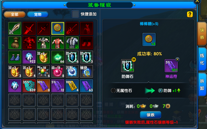 镶嵌属性石是第二种提升装备属性的方式,相对于精炼不同的是,镶嵌属性石无固定要求,可自主选择想要镶嵌的属性石。同一件装备镶嵌完属性石后,后续只能镶嵌该属性的属性石。