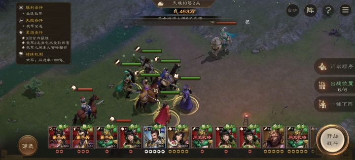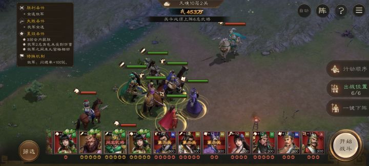 上魏延李儒曹操主角孙尚香袁术六人,初始站位如封面,第一回合走位到最后一张图的位置,袁术曹操最后行动上增益(袁术孙尚香曹操主角之间站魏延)。